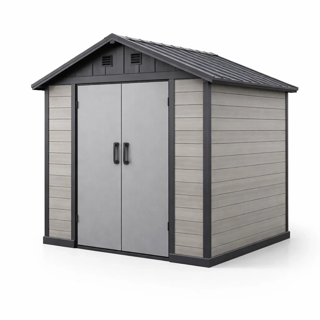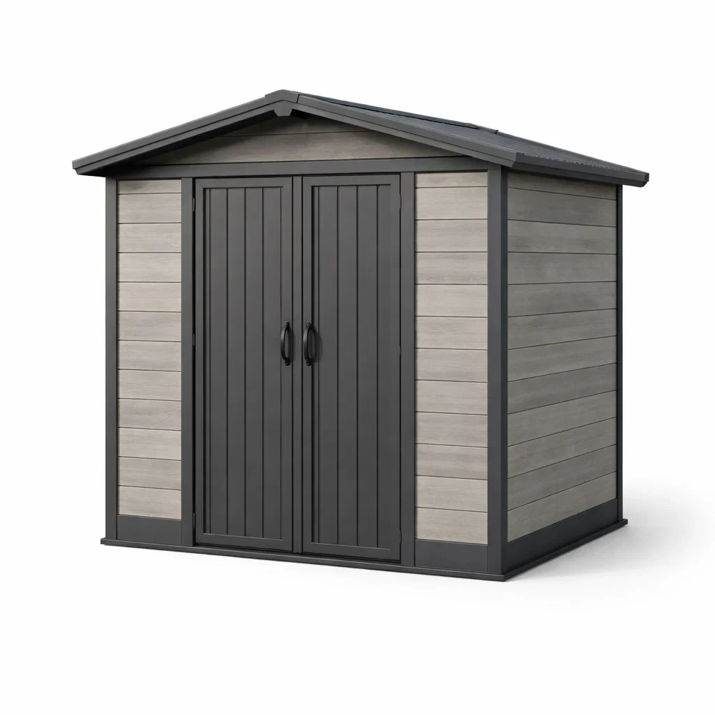 Abri de jardin en résine avec double porte gris et marron 185x152x226 cm