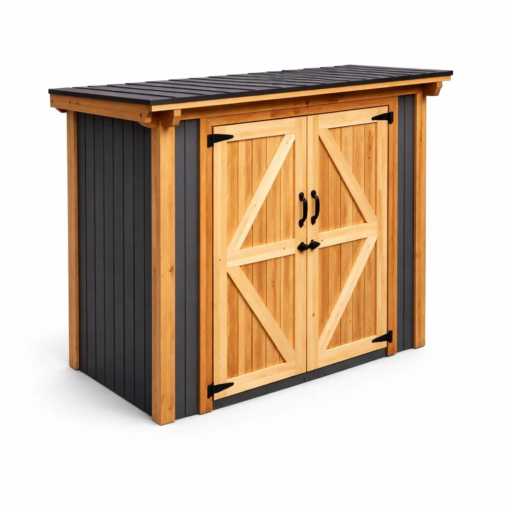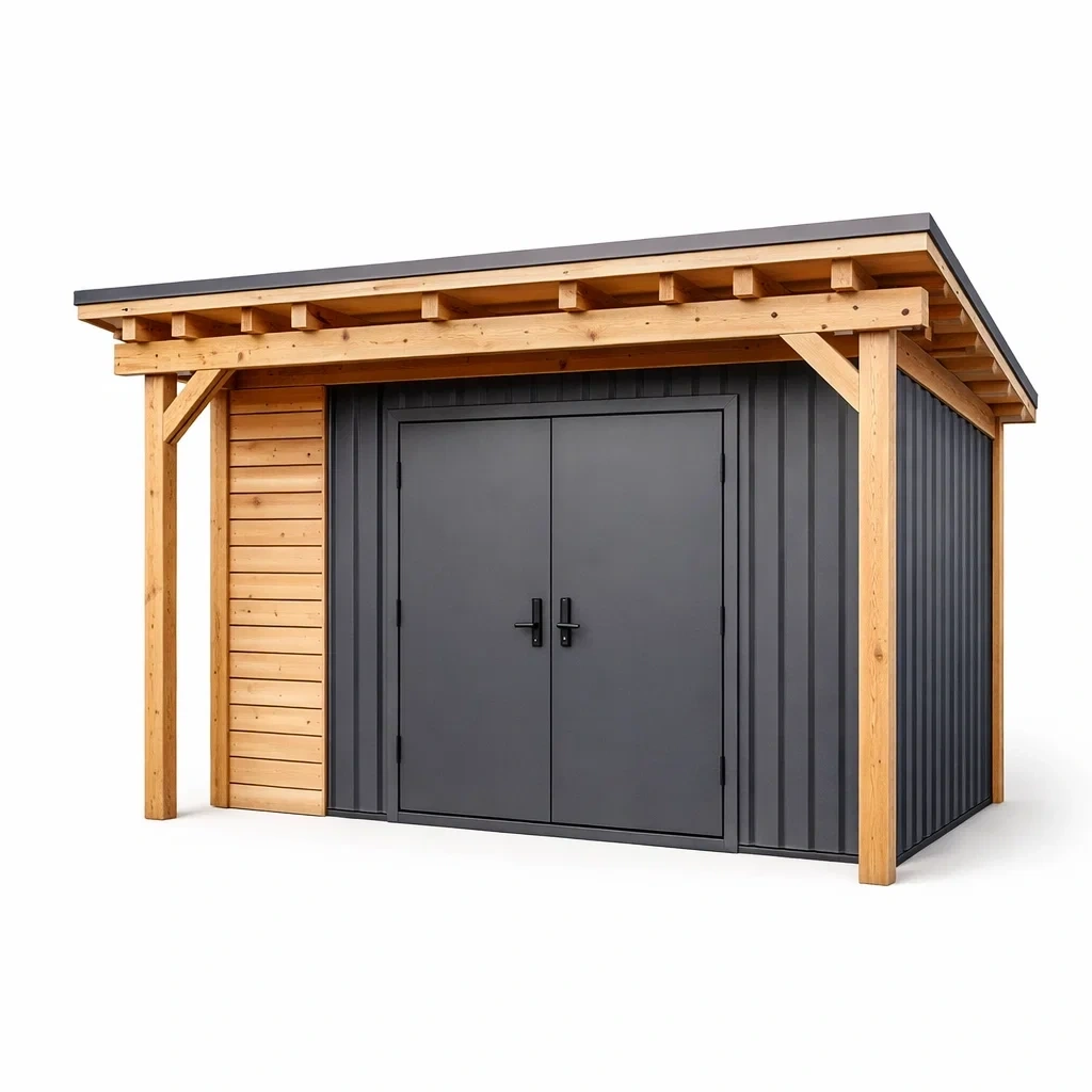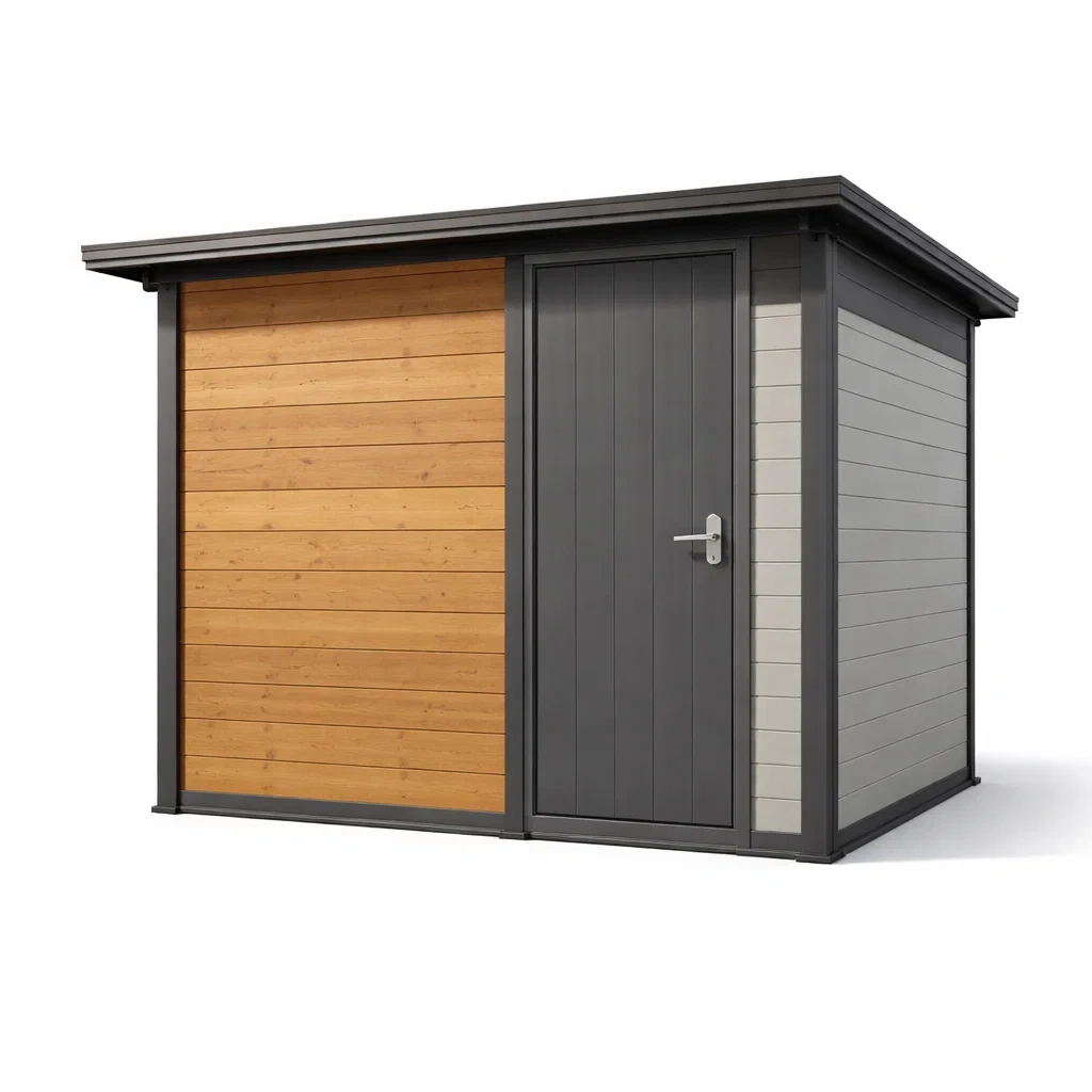 Abri de jardin en métal et bois couleur naturelle avec toit plat