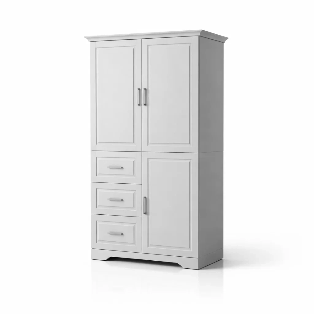 Armoire haute en mdf blanc et chêne avec 3 portes et 3 tiroirs