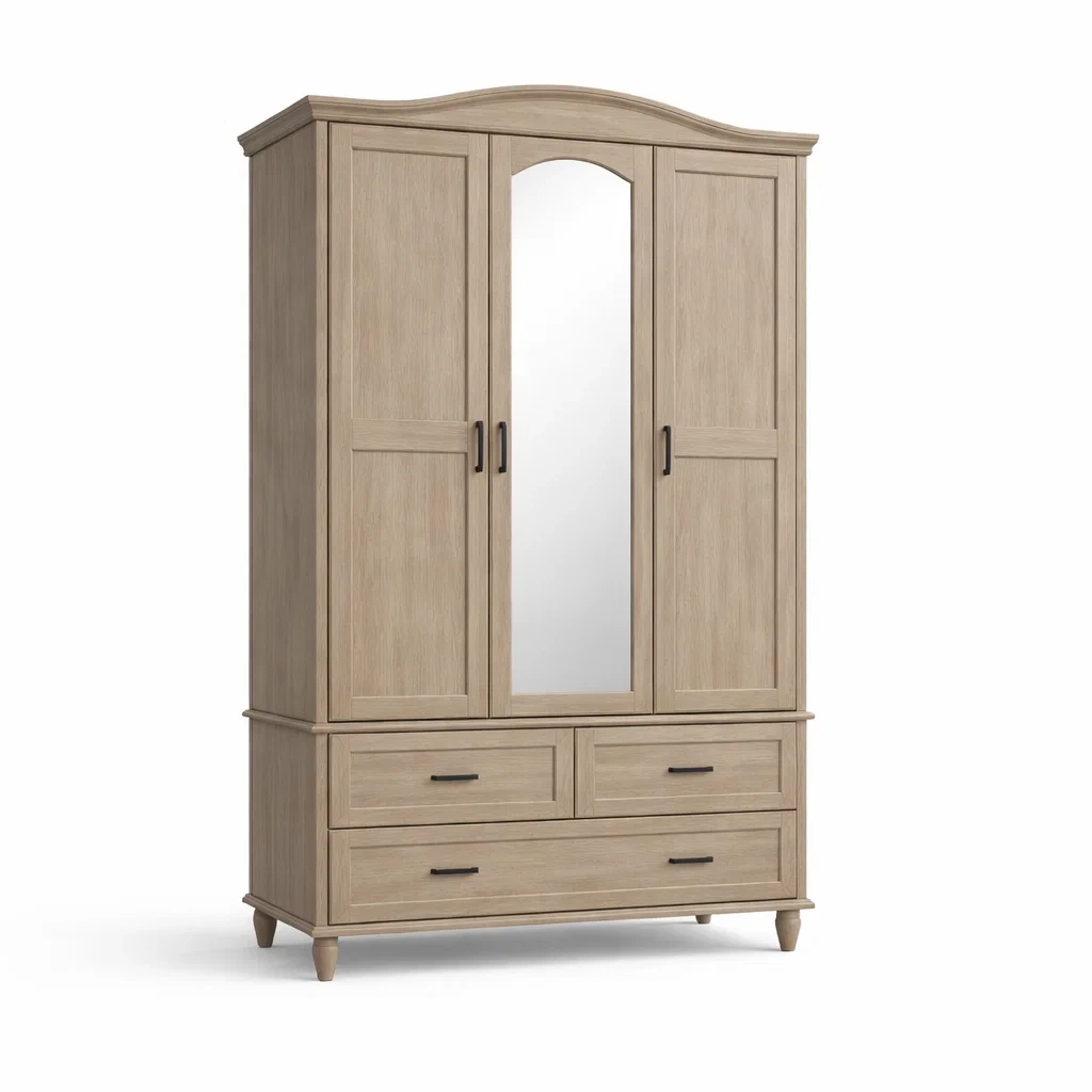 Armoire en bois massif gris avec miroir et tiroirs 3 portes