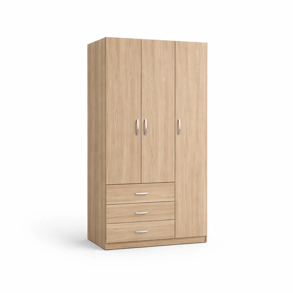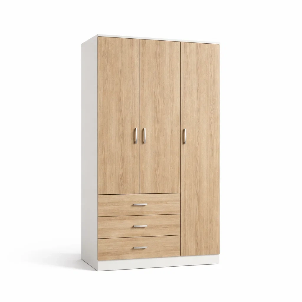 Armoire en panneaux de particules ch differences chêne avec 3 portes et tiroirs chêne blanc 180x90x50 cm